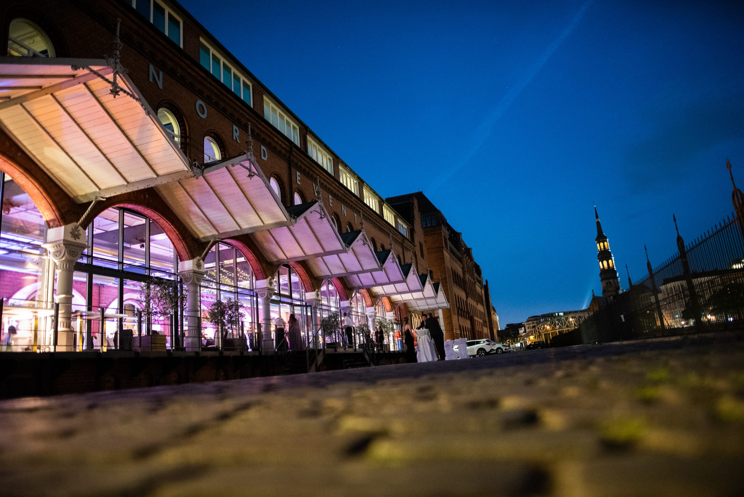 Das Getting Ready fand im eleganten Hotel Vier Jahreszeiten Hamburg statt – eine traumhafte Kulisse für die ersten, emotionalen Momente des Hochzeitstages. Die freie Trauung und Hochzeitsfeier wurden anschließend im historischen ehemaligen Hauptzollamt Hafen Hamburg gefeiert. Diese Location verbindet hanseatisches Flair mit urbanem Charme und ist eine der schönsten Hochzeitslocations in Hamburg.